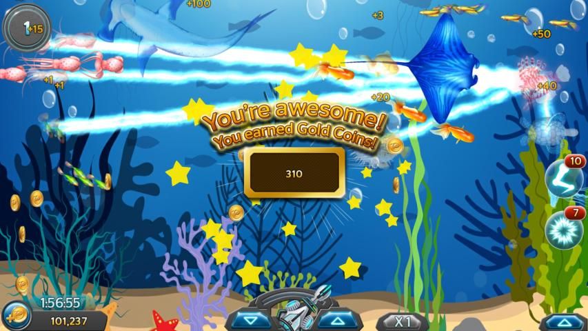 - Ketuk layar ponsel Anda untuk menembakkan ikan.