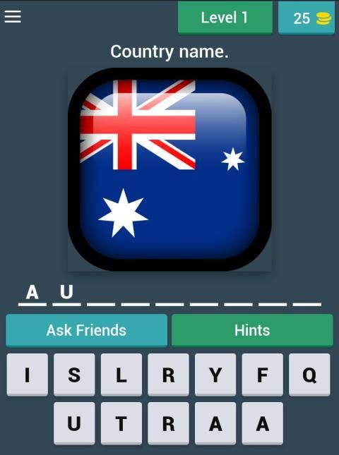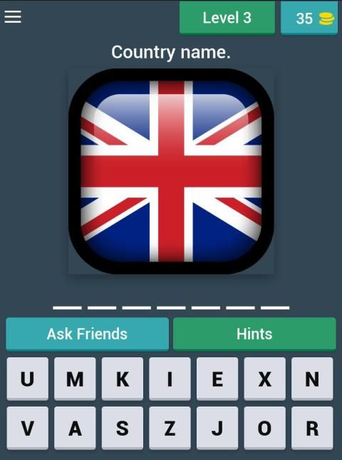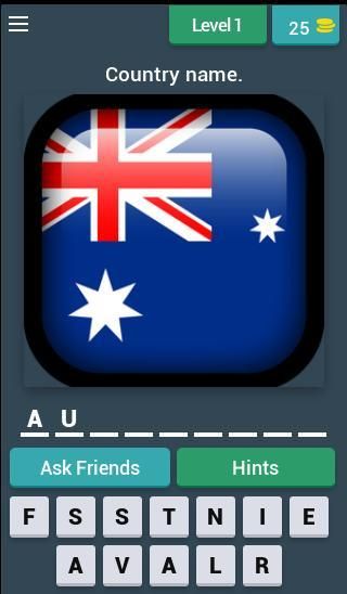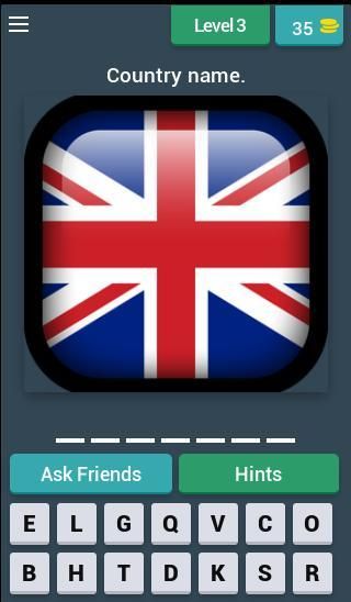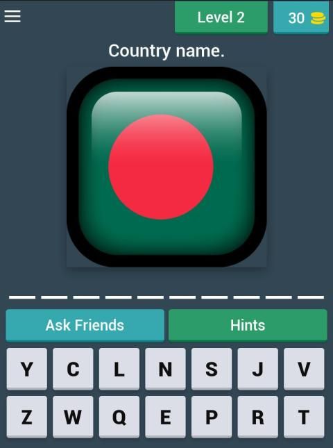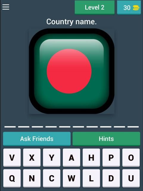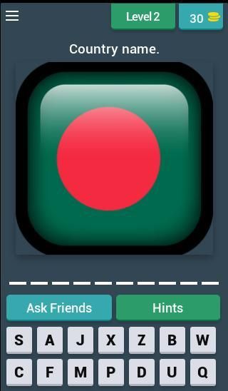 In "Flag Quiz Game ", you can use hints or ask help from your friends, if you need help.