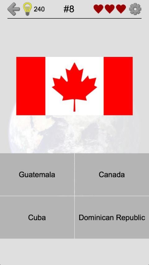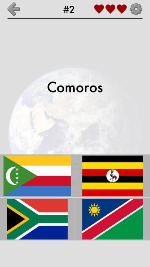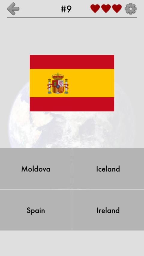 1) Spelling quiz (easy and hard) - identify the country which flag is shown on the screen.