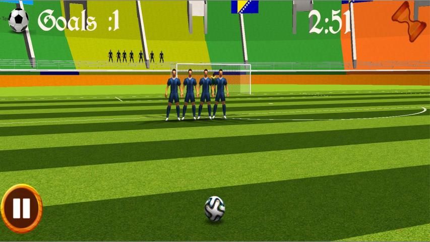 Mulai mainkan gim sepakbola baru di perangkat android Anda. Gim sepak bola ini memiliki beberapa mode gim sepak bola termasuk pemotretan target, mode penjaga gawang dan banyak lagi. Menghindari pembela dan penjaga gawang dengan hanya menggesekkan layar Anda. Anda juga dapat mengontrol ayunan sepak bola untuk menghindari kiper dan menabrak tembok pertahanan membela tujuan. Lingkungan stadion sepakbola realistis 3D yang baru, kontrol gim yang sederhana akan membuat Anda menikmati permainan.
