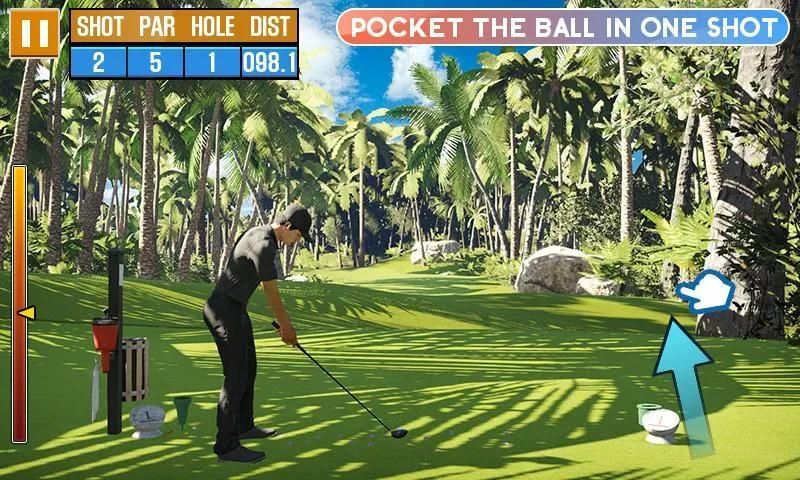- Naik level dan maju melalui 60+ lubang, kursus, dan level.