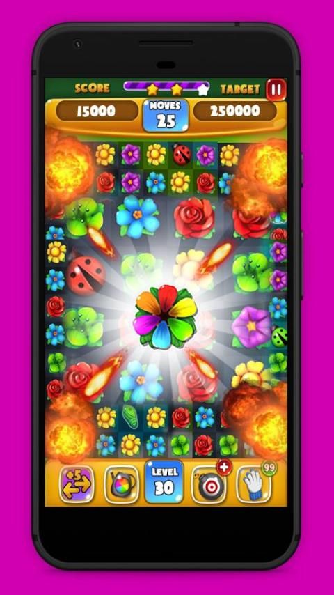 -Flower Menghancurkan Frenzy Crush, menghancurkan, dan ledakan Bunga dengan bonus khusus yang akan membantu Anda lulus tingkat sulit.
