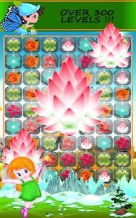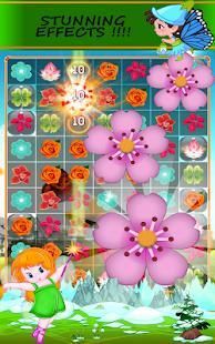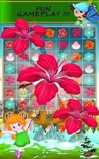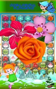For having fun playing with flower buds and make them bloom you need to match 3 of the same blossom flowers by creating lines or rows of the same buds color , if you Match more than 3 blossoms you get Awesome Blossom lighting bonus of blooming flowers that will crush a full row or line of bloom to clear the flowerbeds if that is the level target.