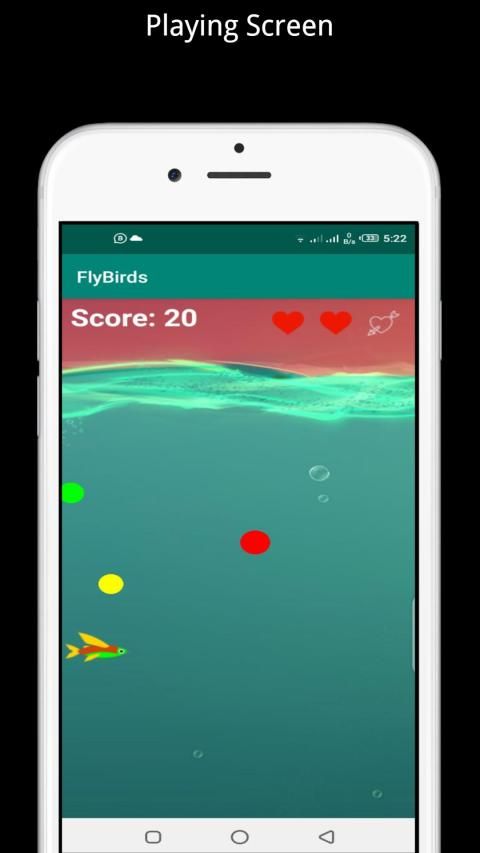 first version of Game name is Flying Fish Game. In this game player with single bird to destroy the all the ball except red and get a score 10 because the when bird destroy three red ball the game is over and start again for further play.
