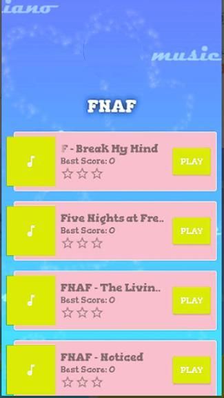 This is a game of Five Nights and Freddy's Piano made for FNAF fans, Game is simple enough, you just touch Five piano tiles and follow all the songs. do not touch other tiles or you will lose. All Lovers will love this game. Piano Tiles FNAF
