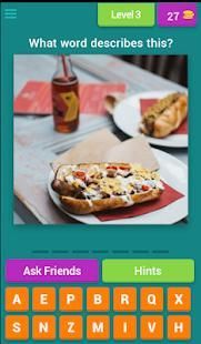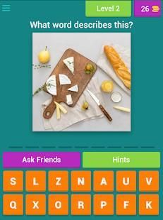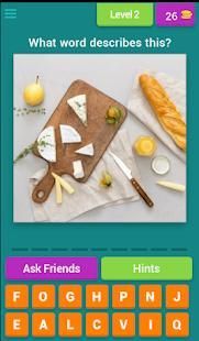 Guess the word associated with the picture and level up to become a food quiz master! Travel on an adventure to foreign lands and decipher the obscure answers behind the mysterious food-related photos. Flip through level after level to uncover the enigmatic words!