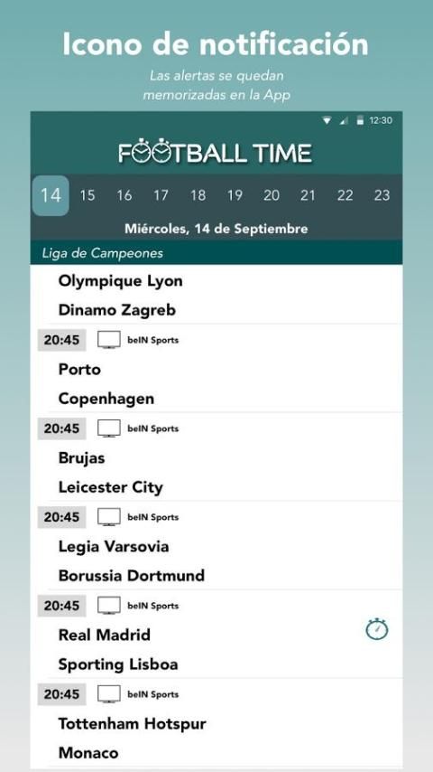 Football Waktu melakukan semua pekerjaan untuk Anda, hanya memberitahu sebelumnya bahwa Anda ingin memperingatkan pihak yang menarik minat Anda dan aplikasi akan menangani memperingatkan Anda untuk tidak melewatkan setiap pertandingan sepak bola.