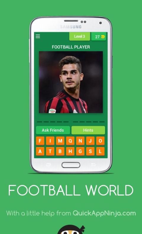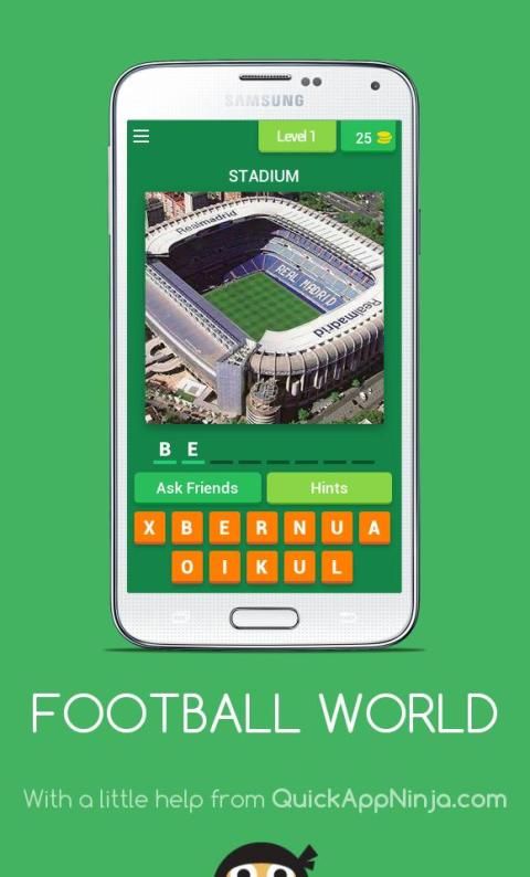 Football World - Football Quiz, is a quiz measure your knowledge of Football. Guess the TOP Football Player, Guess the Football Manager, Guess The Club Logo, and Guess The Home base Stadium + (Bonuss Guess a Legend Football Player)