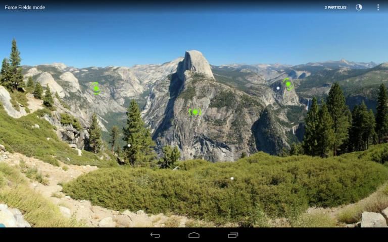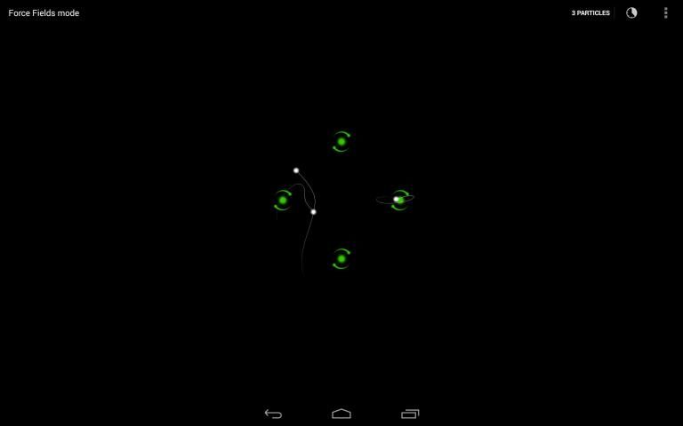 - Force fields: touching anywhere on the screen adds a force field and from the menu option you can add up to 10 particles.
