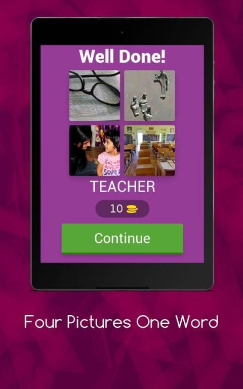 Kata permainan yang paling populer di seluruh. Menantang kemampuan kognitif Anda dan menguji kosakata Anda dengan cara yang abadi. Menebak kata dari empat gambar yang diberikan. Cocok untuk segala usia. Bermain setiap saat dan kehilangan diri sendiri dalam dunia yang menakjubkan dari kata-kata dan gambar. Sebanyak 230 tingkat menarik yang tersedia.
