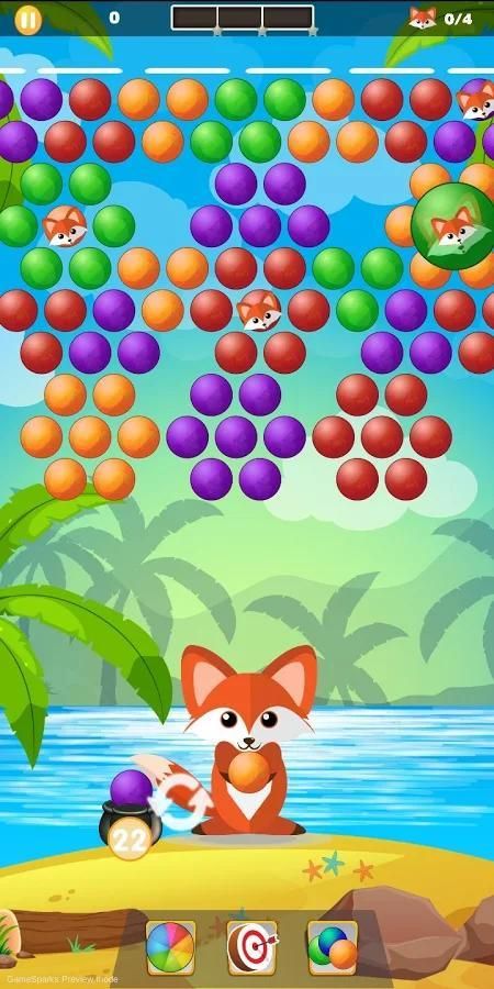 Bantuan untuk Fox Mama untuk menyimpan semua anak-anaknya. Menggabungkan 3 atau lebih objek warna yang sama untuk menghancurkan gelembung