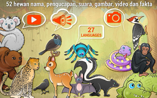 - Hewan datang untuk hidup dan bermain nama hewan dan suara audio.