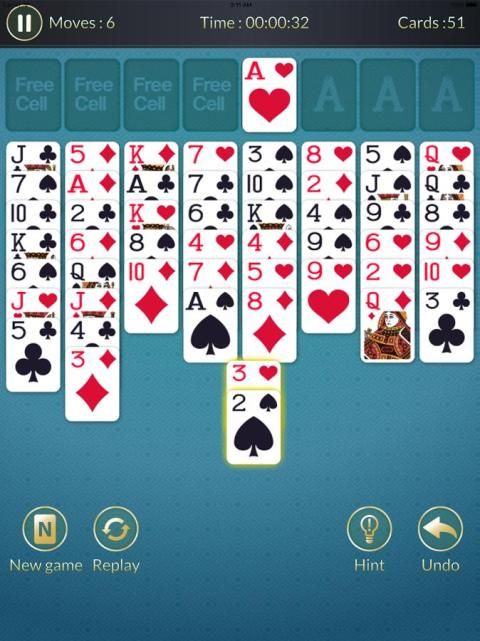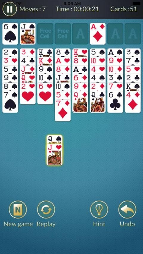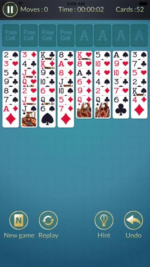 ◆ FreeCell Solitaire menambahkan elemen baru dari strategi untuk game solitaire klasik Klondike. Setelah berurusan dari standar deck dari 52 kartu, menggunakan empat tempat sel bebas sebagai penampung saat Anda mencoba untuk memindahkan semua kartu dari Yayasan tumpukan untuk menang.