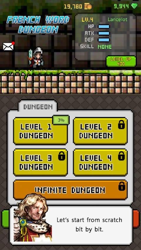 1. Tingkat Dungeon: Anda dapat mempelajari kata-kata Perancis pada tingkat yang berbeda.
