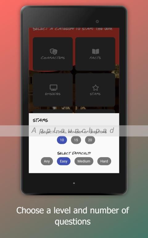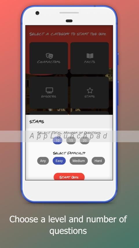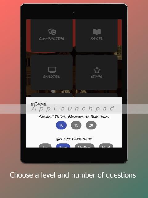 The game has 6 Categories each with many question and levels to test your knowledge and get Know a lot of interesting facts about the show and the stars