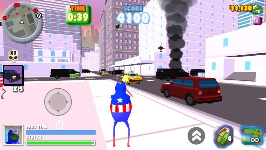 In this game you will be an amazing hero frog. Your city is being attacked by criminals who want to take control of it. The hero frog is going to stop them with his rampage.