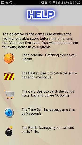 Hit the magic basket with ball and produce fruits. Collect those fruits in ground basket.