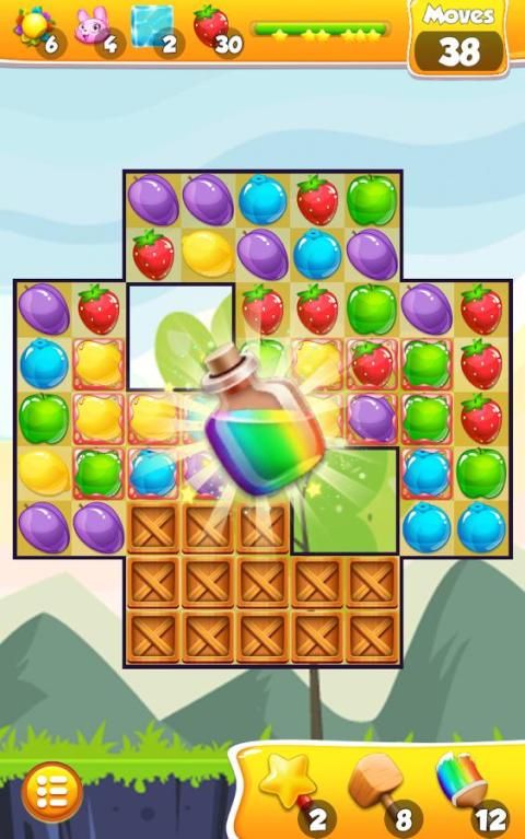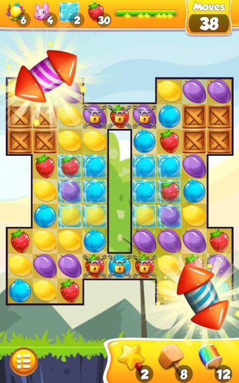 membuat pertandingan dua dari 5 untuk mendapatkan bintang menembak roket yang akan menghapus seluruh baris jelly buah.