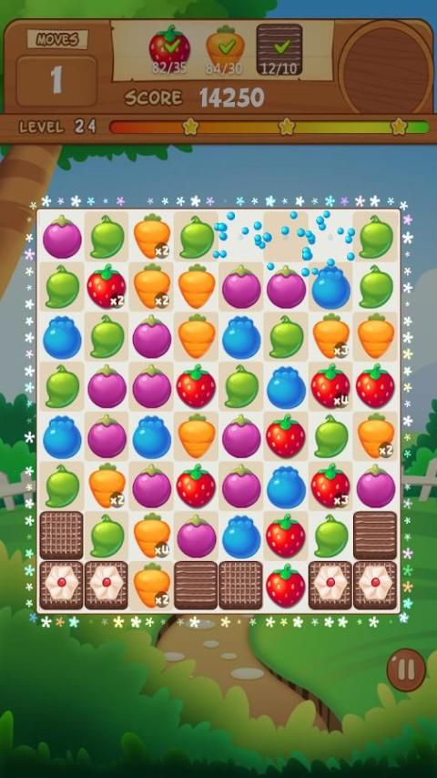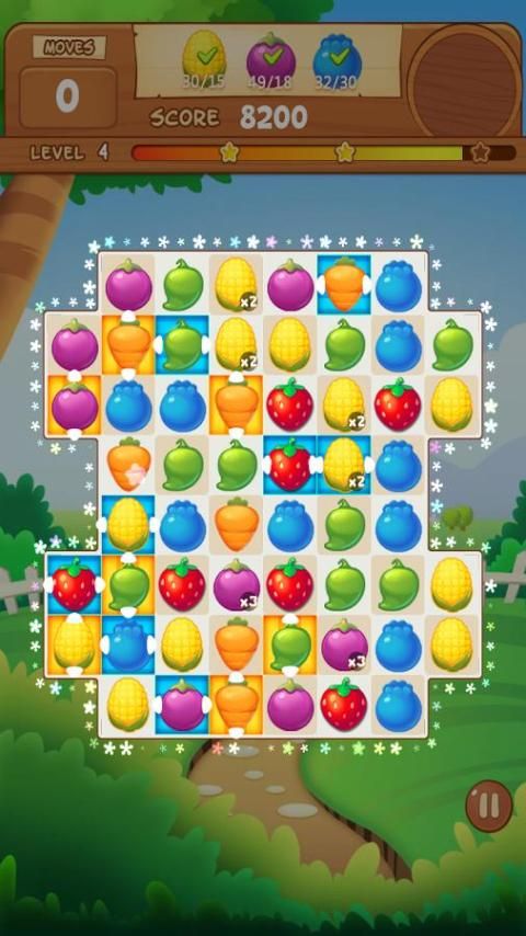 Pertandingan setidaknya 3 buah dengan warna yang sama untuk menghancurkan buah dalam farm.the lebih banyak buah Anda cocok, semakin tinggi Anda score.There banyak buah yang berbeda atau sayuran seperti stroberi, corn.You dapat membuat buah dan pihak sayuran melalui make jus menghancurkan dan apel kemacetan dan on.You akan haus dan lapar karena iming-iming buah yang terlalu banyak.