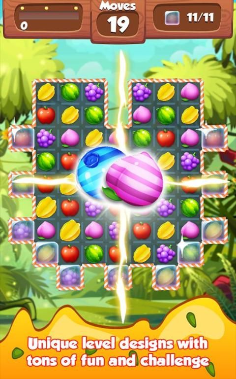 • Gesek untuk mencocokkan 3 atau lebih buah yang indah dari jenis yang sama