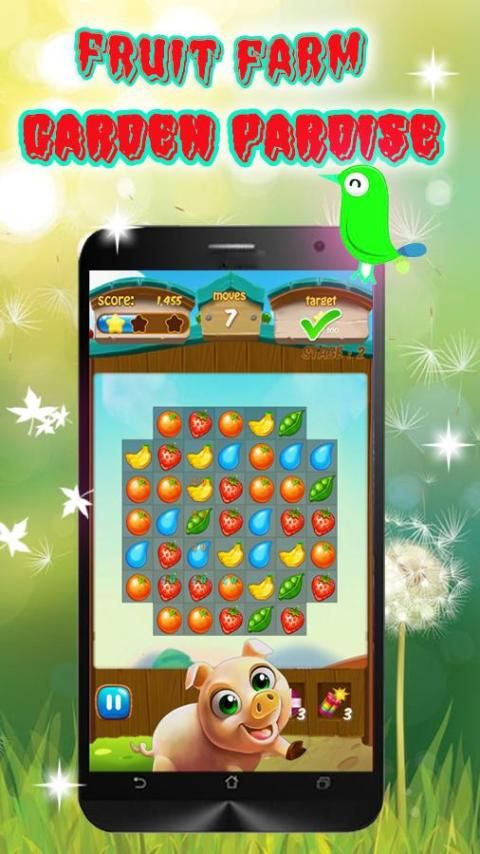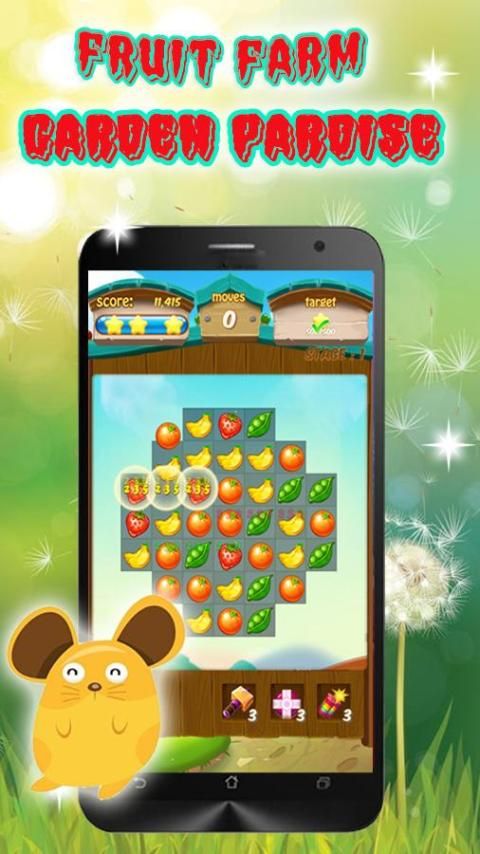 Apakah Anda siap untuk bersantai perjalanan dan menemukan Fruit Farm Garden Paradise. Pertandingan 3 puzzle game, sesuai dengan warna buah-buahan lezat yang sama di baris atau lintas.