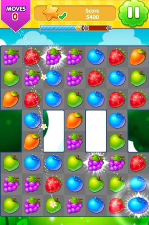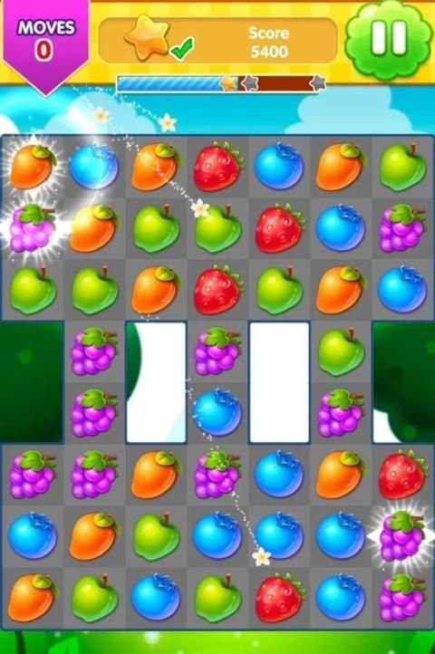 - Pertandingan (link) 3 atau lebih dari buah warna yang sama dengan lurus, salib untuk menghilangkannya.