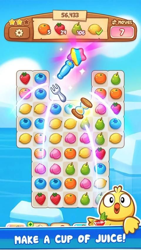 Clear all fruits and candies in same type, combo more than three same fruit to win a power-up fruit to clear more. Ready to enjoy fruits jam now!