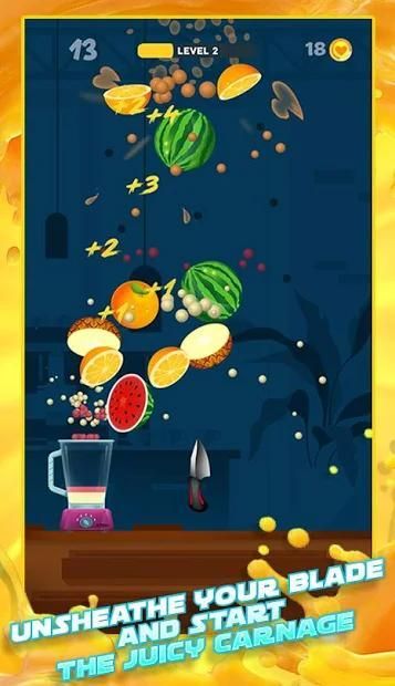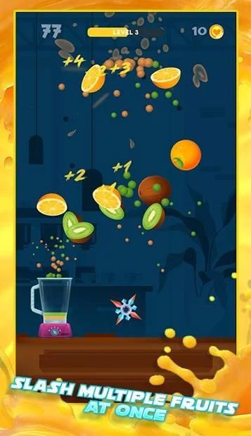 Simply tap the screen to throw the knives out to cut fruits in slices style.