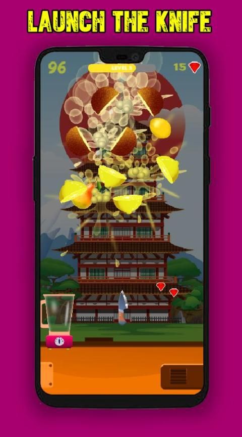 - Tap to launch the weapon, hit the fruit to let it explode.