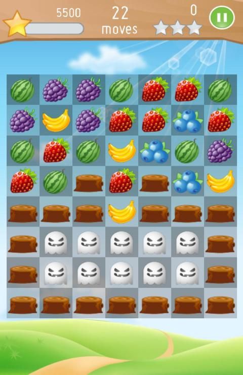 Connect the line to match 3 or more same fruits to harvest, more longer line you connect, more scores you get.