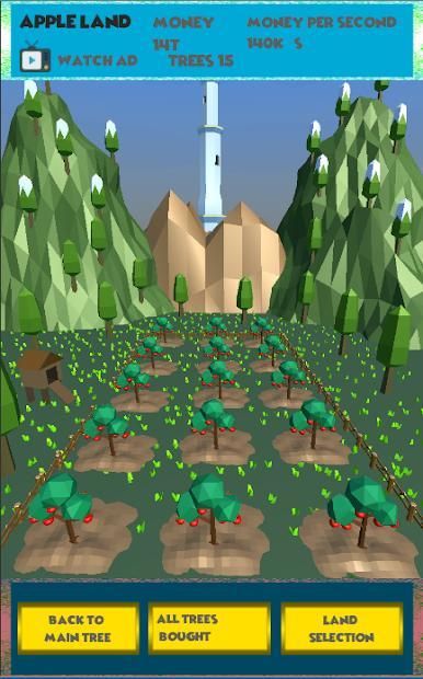 Earn money by collecting apples,then invest in some land and watch your money go up.Start selling different fruits and become one of the richest.Start small,just with one tree but be patient and work hard to earn your own land full of trees,and also different kind of fruits.But you don't stop there,don't forget about your beginnings.Keep an eye on your loyal Apple tree who gave you your first dollars,make sure to keep it healthy.