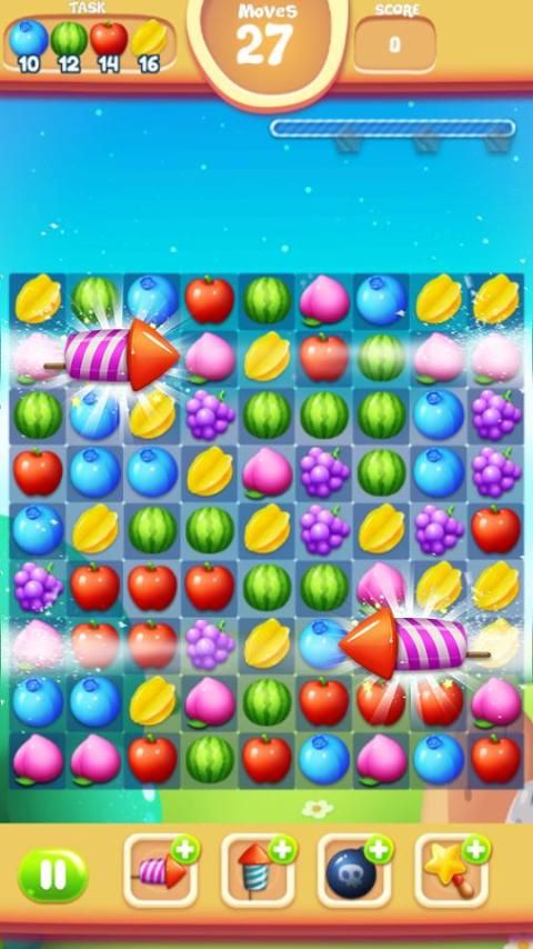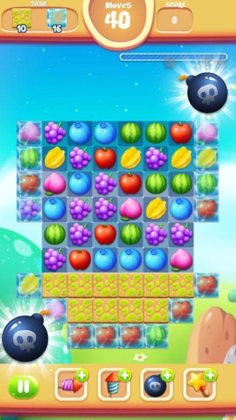 Cobalah untuk runtuh buah untuk membuat beberapa kekuatan bom taman frenzy jam untuk membantu Anda menghapus tingkat.