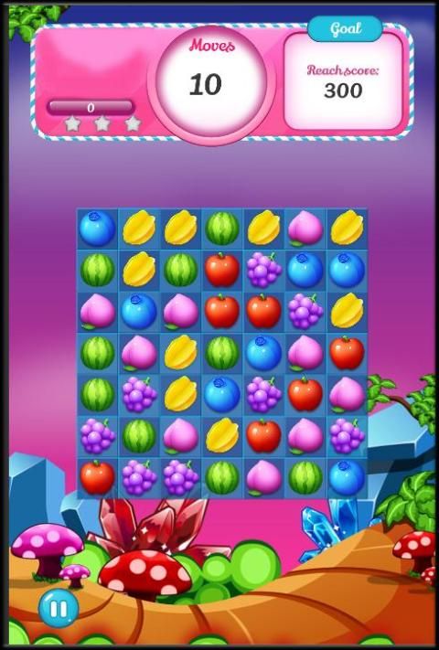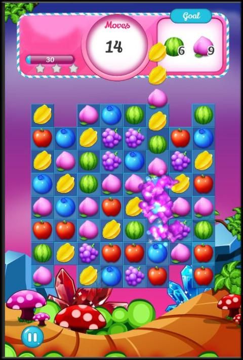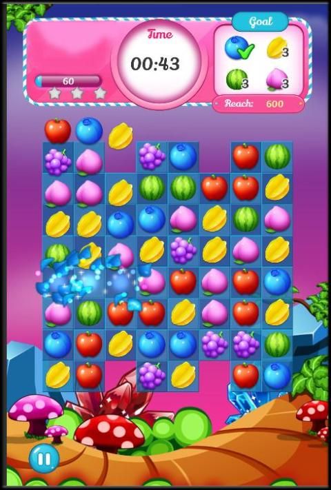- Gesek untuk mencocokkan 3 atau lebih buah.