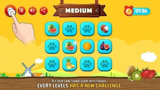 FEATURES OF FRUITS MEMORY MATCHING GAME: