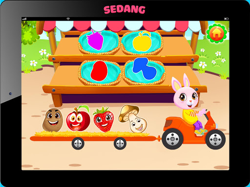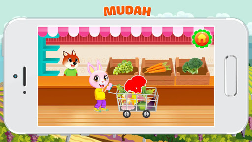 Menonton mereka mempelajari semua nama-nama berbagai buah-buahan, sayuran dan makanan lain melalui menyenangkan dan bermain - apel, anggur, jeruk, nanas, semangka, pisang, kiwi, cherry, strawberry, lemon, jagung, kacang polong, wortel, tomat, lada, jamur, kentang, bawang merah, mentimun, kubis, susu, telur, roti, air, jus, mentega, keju, yoghurt, selai & sereal. Mereka akan mendengar pengucapan serta melihat nama yang tertulis di bawah ini, yang juga akan membantu anak-anak mendapatkan akrab dengan abc itu, surat-surat dari alfabet. Sebuah suara yang menyenangkan akan selalu mendorong dan memuji anak-anak Anda dan balita dan memotivasi mereka untuk terus membangun kosakata mereka, memori, dan keterampilan kognitif saat bermain. Permainan ini diperkaya dengan animasi, suara dan interaktivitas untuk mengulang bermain & belajar. Ini akan membuat balita Anda sibuk selama berjam-jam namun Anda tidak akan pernah khawatir tentang mereka kehilangan setiap bagian dari teka-teki.