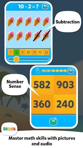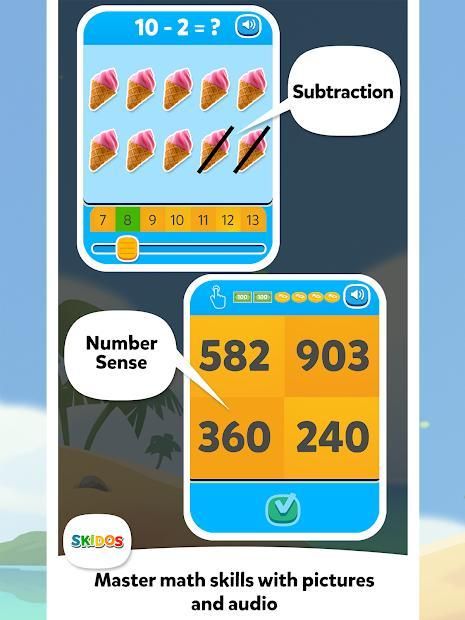 In this updated version, we added much more playfulness and even more interactive ways for your kids to strengthen their math skills! Our improved math questions are now more visual and dynamic, for a more engaging and fun experience.