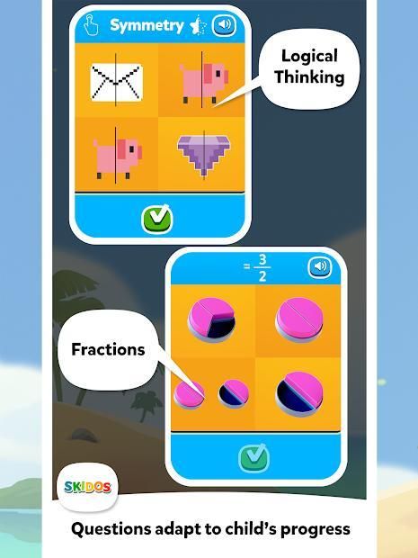 Kids have different learning styles. All SKIDOS games give children the option to pick their subject (mathematics or coding), grade and topic, and progress with problem solving.