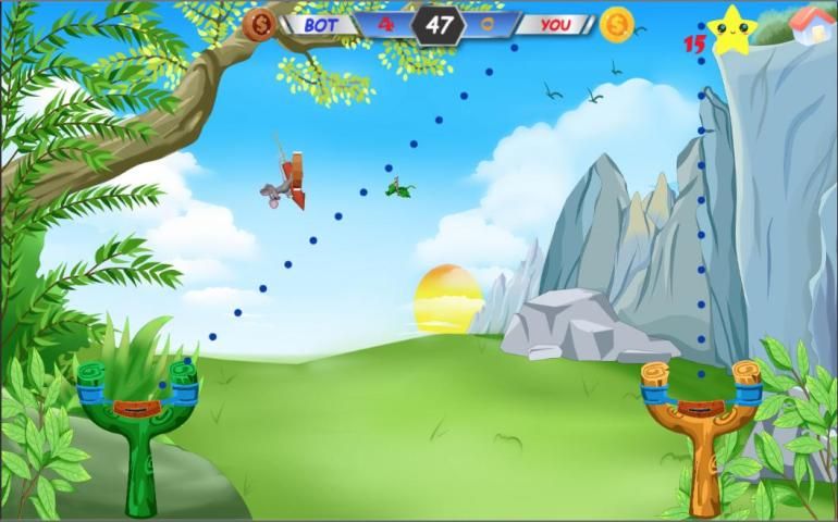 With Fun Shooting, you can experience with 3 different types of weapons (slingshot, bow, rocket) and 2 forms of control (drag and drop, rotate and drop) to kill enemies in limited time. Look fast, aim accurately and shoot to get a score; you should consider shooting gift boxes to increase or decrease your scores. If you conquer some levels, you will have an opportunity to compete with the marksman BOTs.