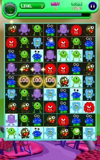 - Membuat rantai panjang monster lucu memberi Anda blaster. Blasters luar biasa, dan membersihkan seluruh barisan monster lucu sekaligus! Jadi cobalah untuk menghubungkan garis dengan warna yang sama dan buat garis sepanjang mungkin untuk mendapatkan poin terbanyak dan lebih banyak blaster gratis.