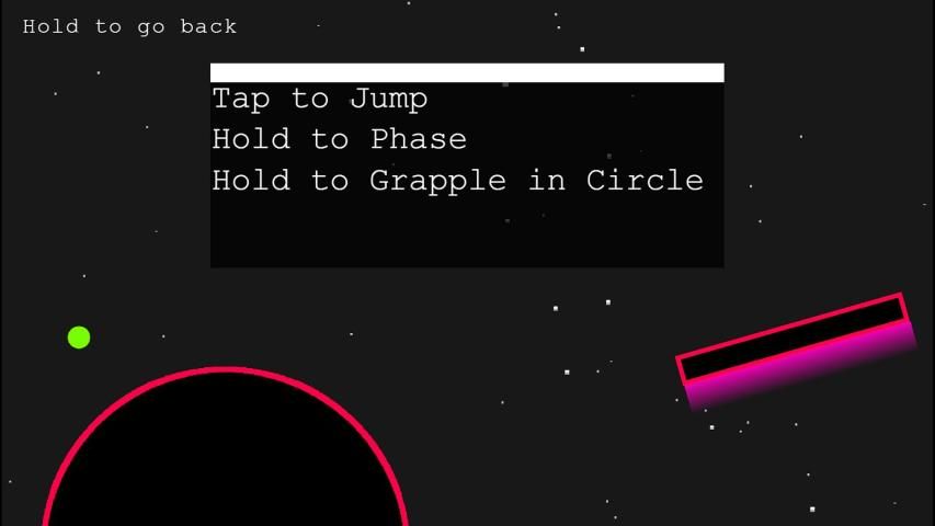 Dalam hardcore platformer fisika berdasarkan Anda harus melintasi medan gravitasi buatan kita buat di dalam kekosongan spasial tessellated dengan vektor gaya. Mengkonversi energi potensial gravitasi menjadi energi kinetik seperti yang Anda ayunan, melompat dan fase jalan Anda melalui rintangan