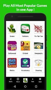 Pada satu kali klik Anda dapat memainkan berbagai game seperti Snake, Solitaire, Tic Tac Toe, Bollywood Quiz, Cricket Quiz, Geographic Kuis, Matematika Kuis, Kosakata Kuis,