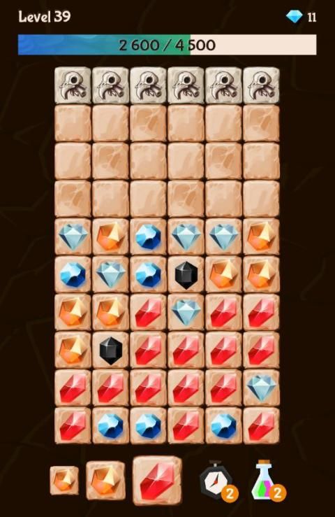 The more lines you remove each turn, the higher your score: but watch out, because a new line is added above the others with every turn. Can you remove enough lines to prevent the gems from reaching the top?