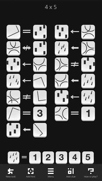 Despite the unusual shape, the "Genius Brain" can be considered an ordinary classic puzzle when parts of an image need to be put together. Each clue in the "Genius Brain" is one of these parts. Therefore, the player’s goal is to place all clues in an empty (imaginary) table at the same time. After that, the only possible column of the table will be found, in which the element indicated at the bottom of the playing field can be located. This number must be entered at the bottom of the playing field. And it's all. If you are not mistaken, you have solved the problem.