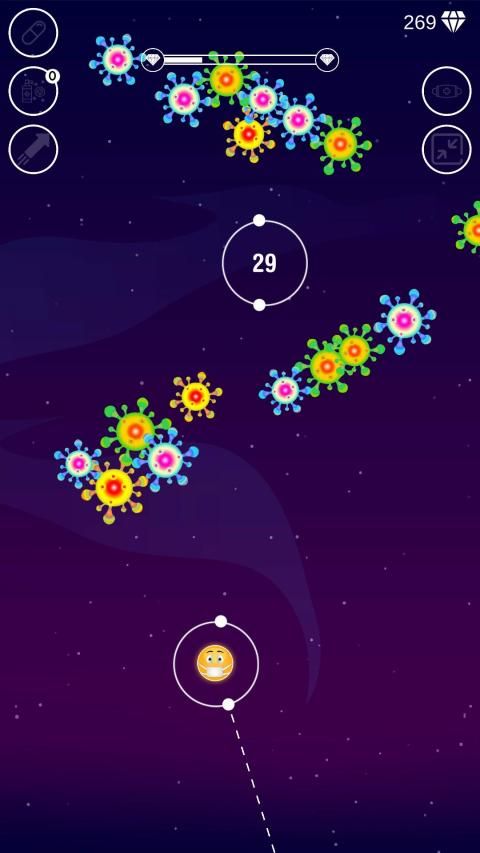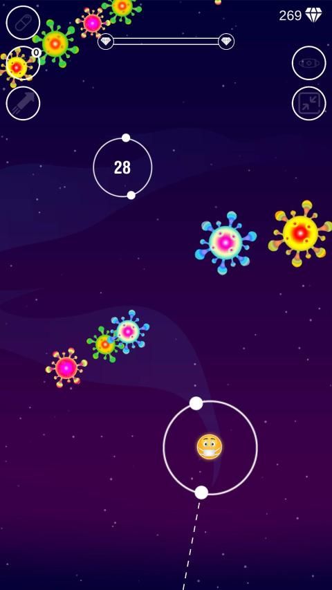 You have to find the gap and tap on the screen to dash your ball by dodging the germs revolving around the protected periphery. Collect various power-ups, diamonds and use them to advance in the game.