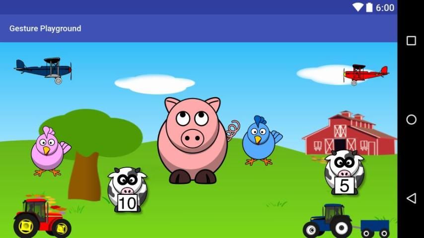 Gesture Playground adalah sebuah aplikasi untuk mengajar balita beberapa gerakan yang diperlukan pada perangkat android. Saat bermain dengan gerak tubuh, Gesture Playground juga akan memperkuat warna, angka, dan suara kendaraan. Balita belajar terbaik dengan bermain dan melakukan tindakan. Setiap tingkat memiliki video instruksional singkat. Kemudian balita akan berlatih / bermain dengan yang gesture pada tingkat.
