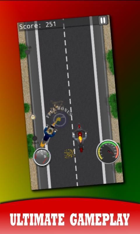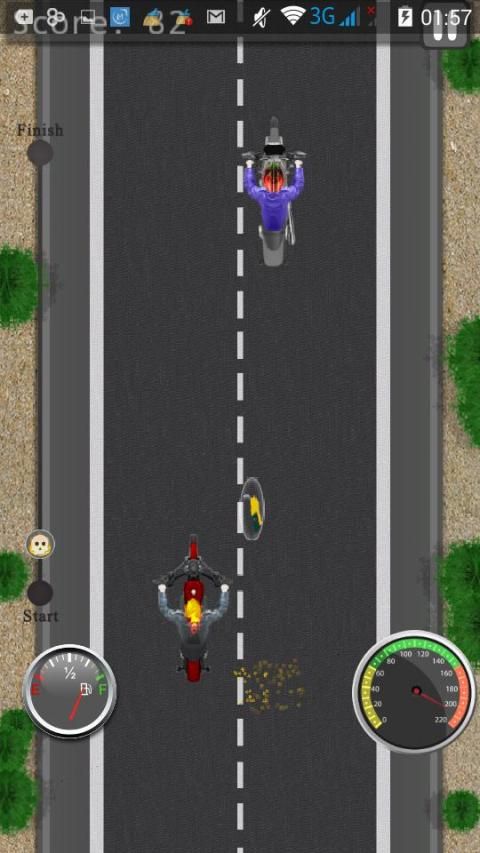 Race in the three different worlds/levels and win the race. Avoid colliding with other racer and complete the target distance. Keep an eye on fuel indicator as well and make sure to refill it.
