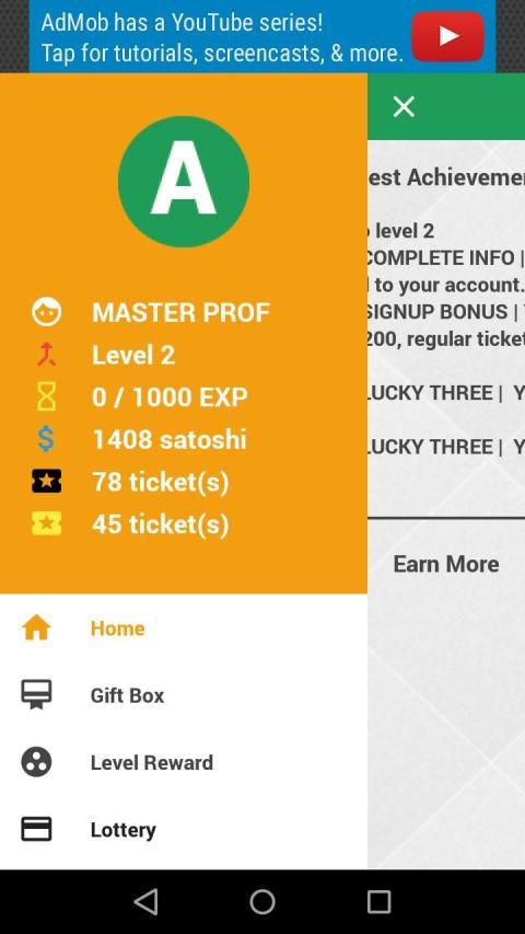 Level - Anda bisa mendapatkan satoshi, tiket reguler, dan tiket khusus setiap kali Anda mencapai level tertentu.