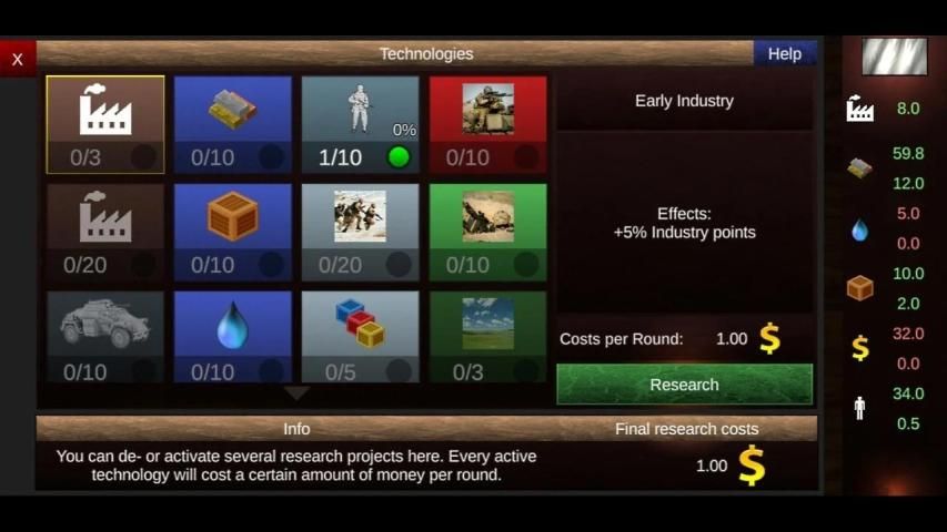 - Gunakan negara Anda jumlah statis poin industri untuk menghasilkan pendapatan uang, memasok pasukan Anda atau menyelesaikan produksi Anda