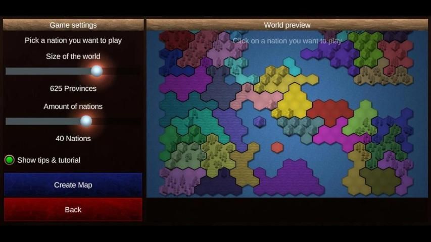 Dunia permainan dibagi menjadi beberapa provinsi heksagonal.