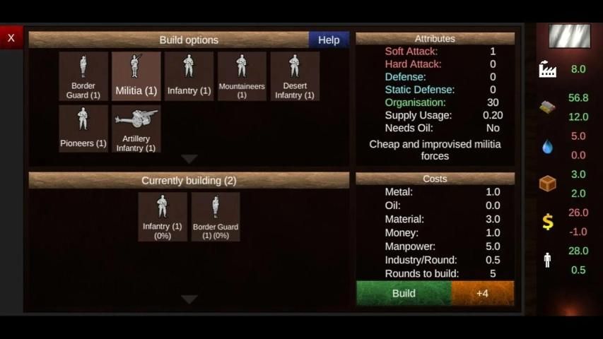 - Use your nations static amount of industrial points to generate money income, supply your army or complete your production